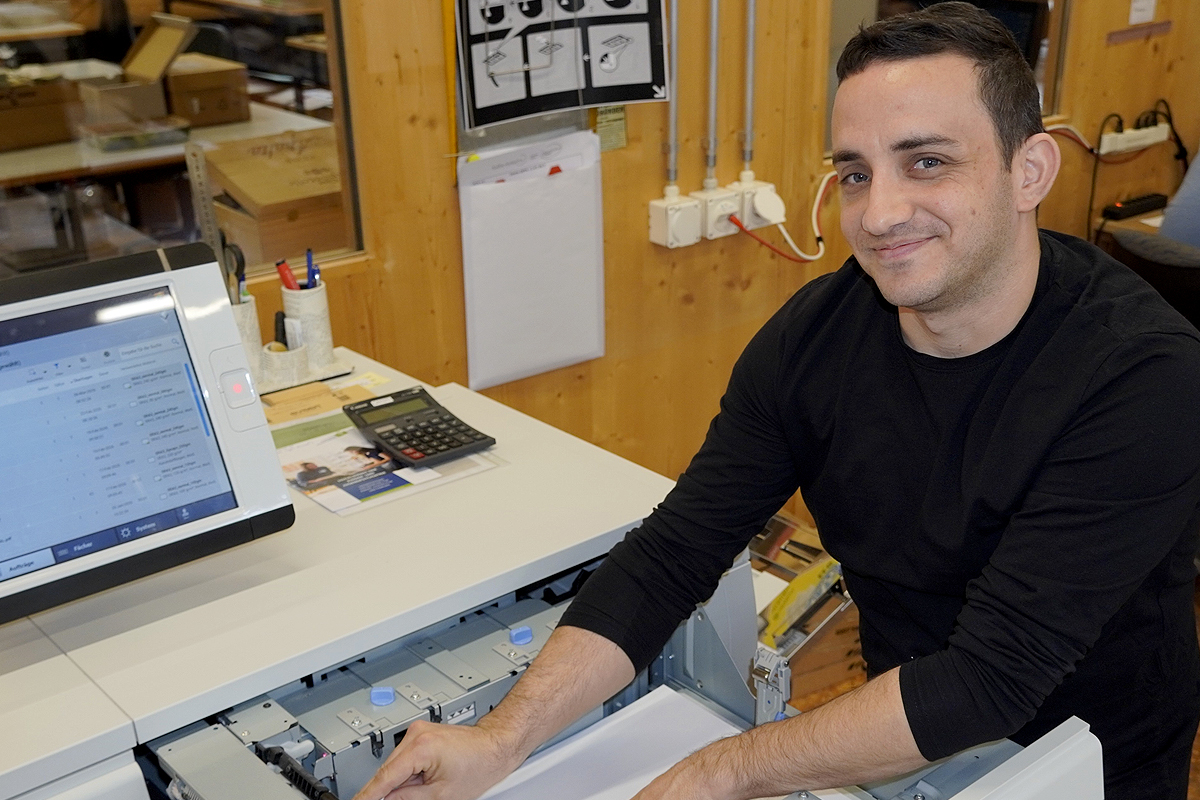 Das wissen auch die Fachbetreuerinnen und Fachbetreuer der ARBES. Ihnen ist es wichtig, die betreuten Angestellten in ihren Stärken zu fördern und in ihrem Tun zu bestätigen. Dazu gehört in Andreas Fall, ihm Schritt für Schritt Verantwortung zu übertragen. Die Arbeit in der Druckerei besteht aus der Vorstufe, dem Druck selbst und der Weiterverarbeitung. Andrea war in seiner Ausbildung auf den letzten Prozessschritt fokussiert, nun darf er sich in den anderen beiden Schritten ausprobieren, viel Neues dazulernen und, so hofft er, bald auch schon vollständige Druckprojekte verantworten.
