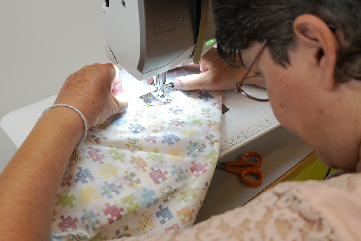 Hochkonzentriert und mit einem scharfen Blick für gerade Linien und saubere Abschlüsse sitzt Morena an ihrer Nähmaschine. Neben ihr stapeln sich Baumwolltücher, deren Ecken sie so abnäht, dass der Stoff später einen Holzdeckel mit Schaumstoffmatte verkleidet, der als Sitzgelegenheit einer Spielzeugkiste dienen wird. Geschickt legt sie den Stoff in Falten, Kante exakt auf Kante. Sie weiss genau, wo sie eine Lücke für den Gummizug lassen, welche Knöpfe sie drücken oder wann sie das Garn wechseln muss.